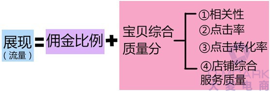 展現(xiàn)排名:綜合得分=寶貝綜合質(zhì)量分*傭金比例